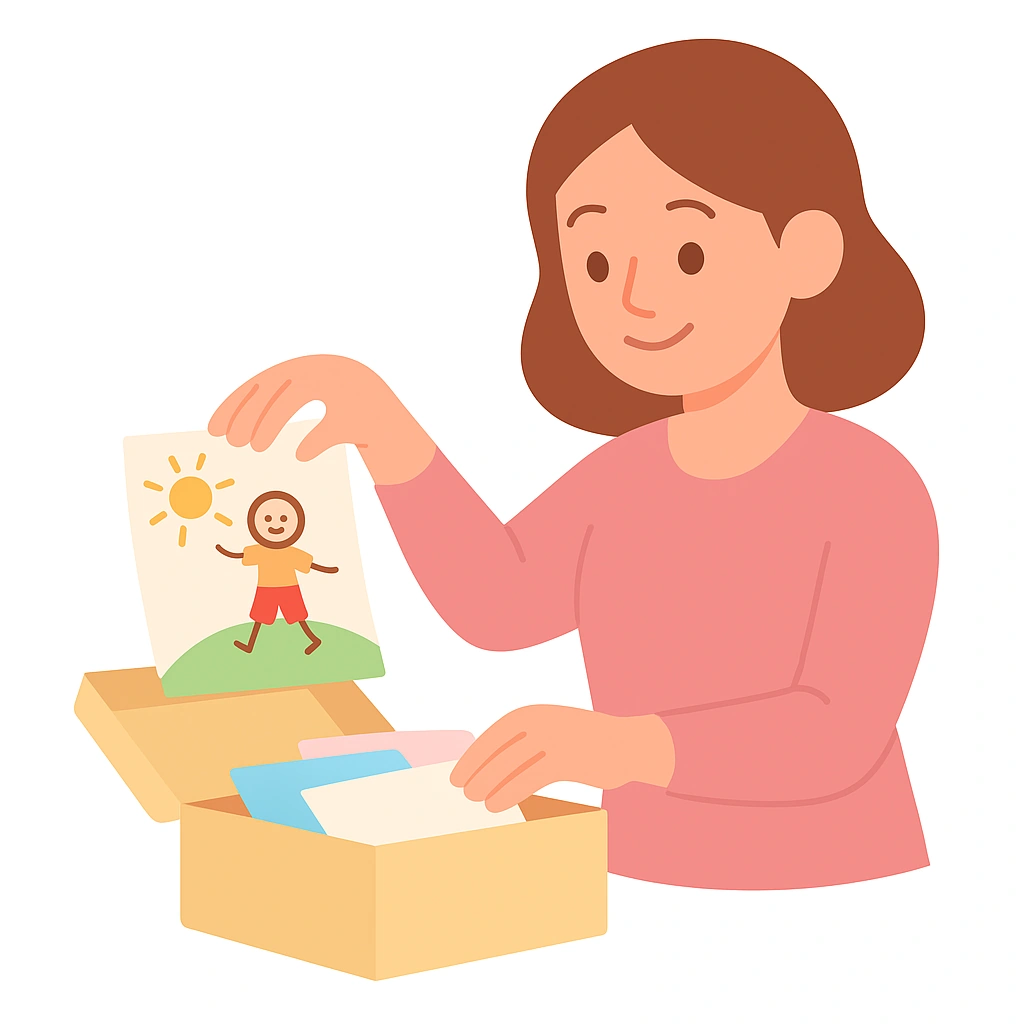 - Közös visszanézés évek múlva – mint egy családi fotóalbum, de a gyerek rajzaival.